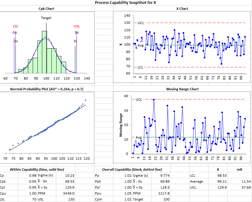 Идеально центрированный процесс — это процесс, среднее значение которого точно находится между двумя пределами спецификации (это означает, что на полпути между ними будет Cpk, равное 1. Как это возможно? Давайте проверим математику.