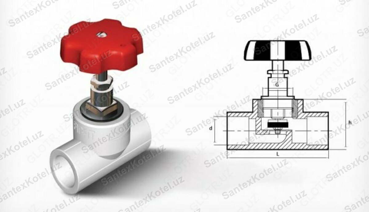 Запорно-регулирующий вентиль с корпусом из полипропилена. Предназначен для использования в составе полипропиленовых трубопроводов систем водоснабжения, отопления, пневматических и технологических установок. Монтаж осуществляется методом раструбной сварки.
