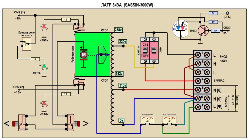 Выходной контактор. В случае аварии стабилизатора или резкого импульсного скачка входного напряжения, он мгновенно отключит электроприборы и предотвратит их перегорание.