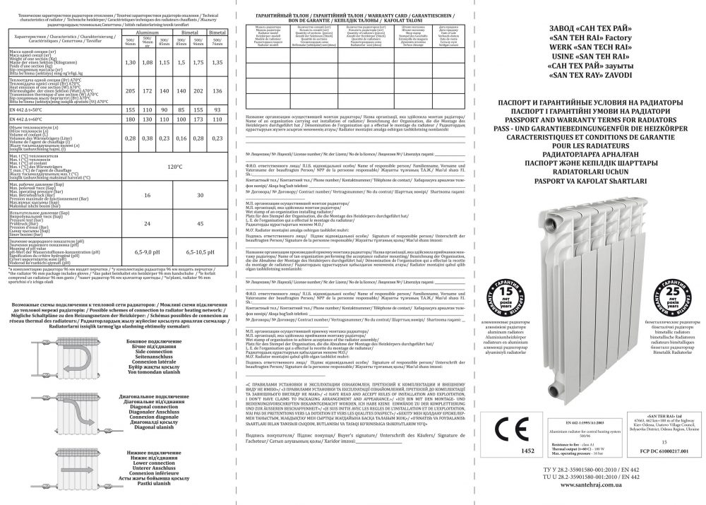 - В 1 секцию биметаллического радиатора — 0,25 л;