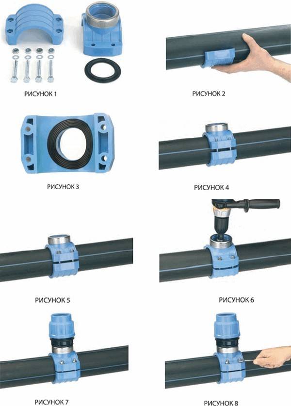 видео-инструкция по монтажу своими руками, как врезаться в водопровод, фановую, полипропиленовую, чугунную, канализационную, водопроводную трубу под давлением, под прямым углом, врезной хомут, фото и цена