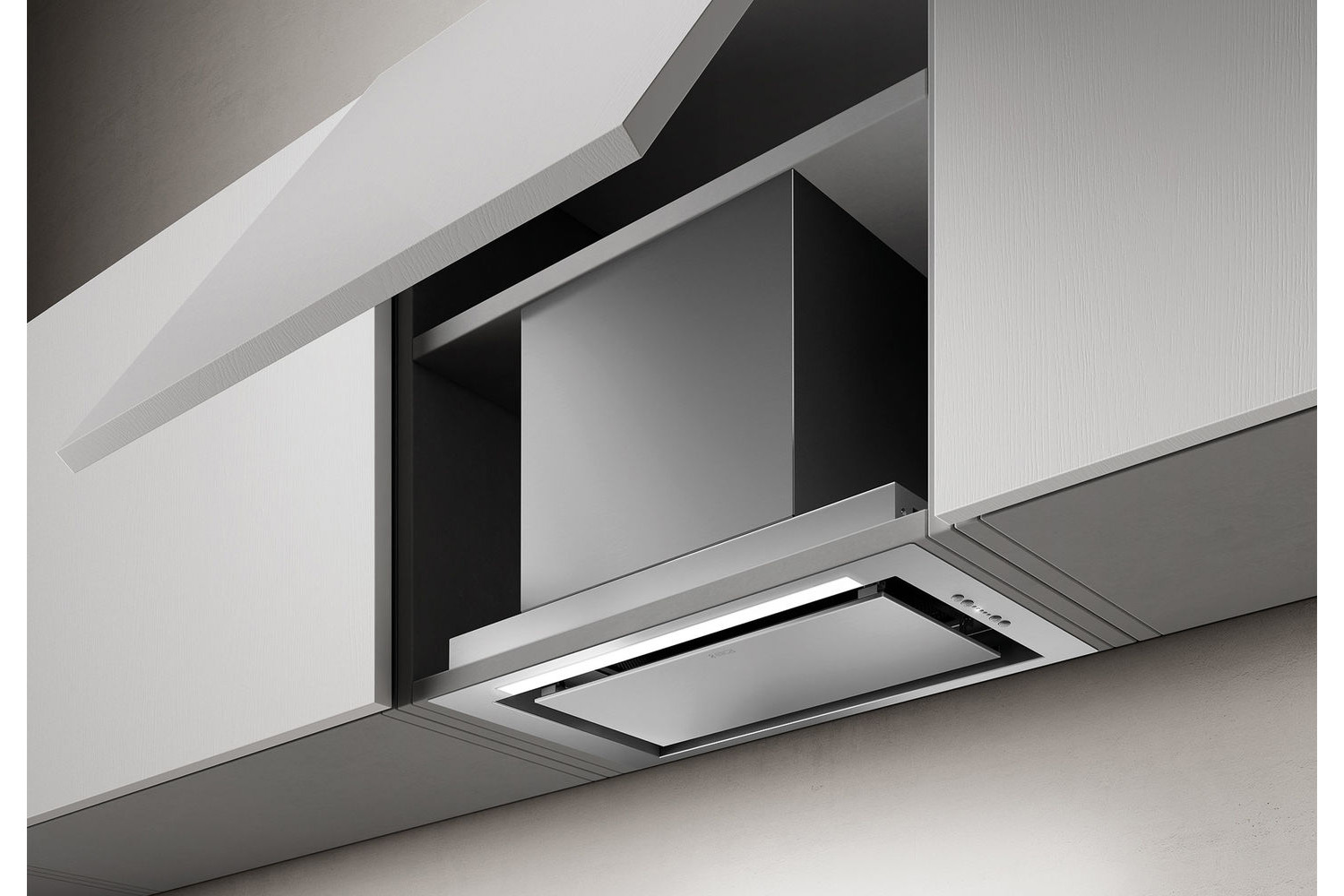Эта техника отличается компактными размерами 60х30.5х17.4 см и в выключенном виде практически незаметна. Благодаря функции Slide Stop, для включения вытяжки достаточно выдвинуть телескопическую панель, а для выключения – задвинуть ее обратно. Скорость работы вентилятора задается посредством клавишного переключателя, расположенного на панели.
